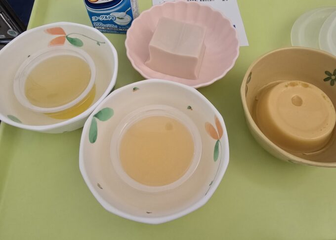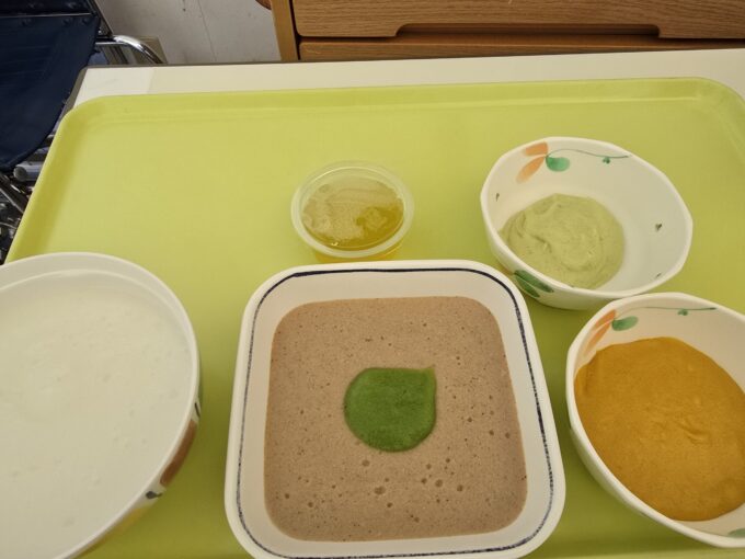 ここで、主治医とSTさんの協議の末、経鼻経管栄養のチューブを抜いてもらえることになった。そこからは、ゼリー状のものから、ミキサーでつぶされたもの、刻んだ食材にとろみのついたものとステップアップしていくことができた。